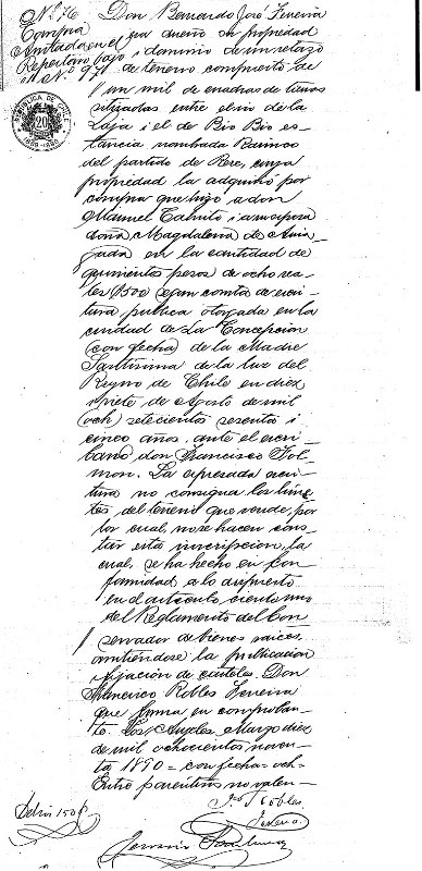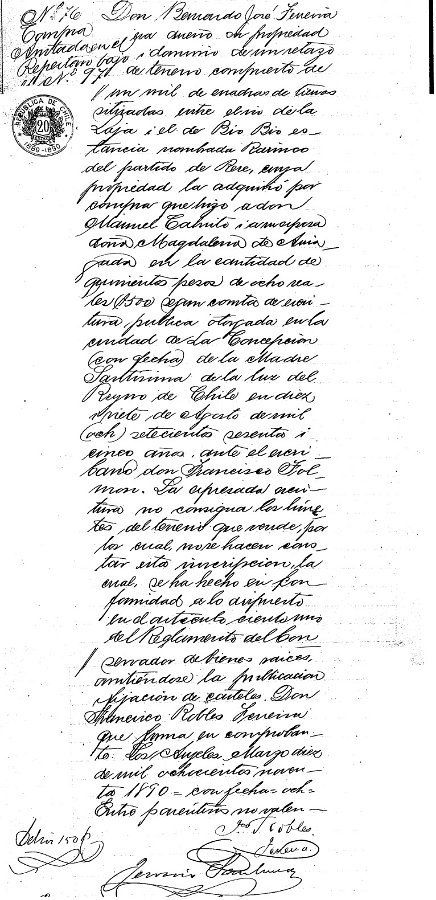 Bernardo Ferreira (suego de Alejo Robles) compra en 1775